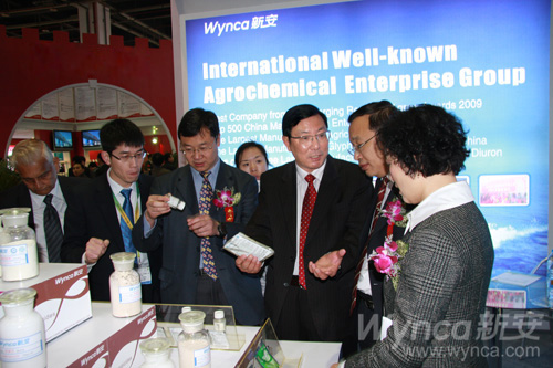 开幕式结束后,中国石油和化学工业联合会赵俊贵副会长、中国贸促会化工行业分会马春艳副秘书长、中国农业部农药检定所叶贵标处长等领导,在总经理的陪同下,重点参观了公司的特装展位(如图)。赵俊贵等领导在认真听取了集团公司的经营情况、技术开发、市场推广和未来规划后,对近几年来取得的辉煌成就给予了高度赞誉。