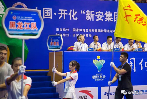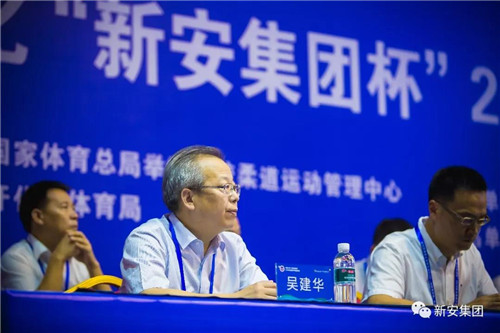 国家体育总局举摔柔运动管理中心党委书记毕东海,浙江省体育局局长郑瑶,浙江体育职业技术学院院长、两届奥运冠军占旭刚,衢州市委副书记、市长汤飞帆,市人大常委会副主任、开化县委书记项瑞良等主要领导出席了开幕式。作为此次赛事的冠名单位,集团董事长吴建华(右一)特邀参加了开幕式。